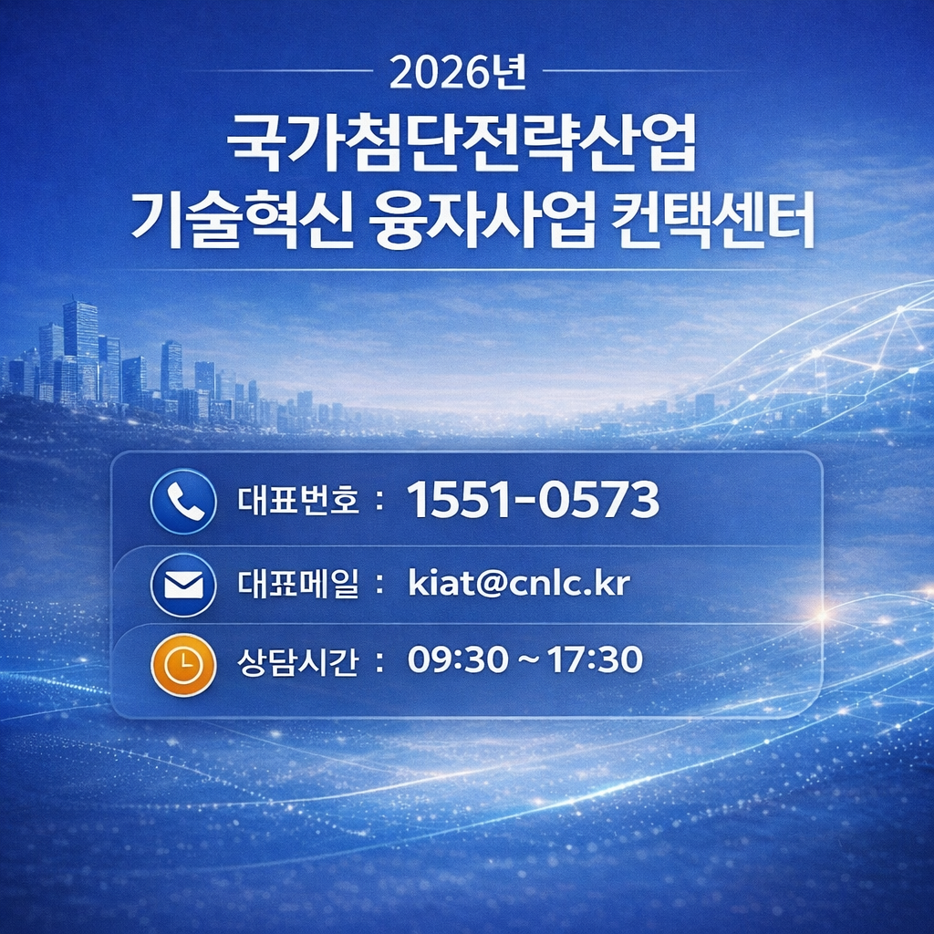 국가첨단전략산업의 경쟁력 강화와 초격자 유지를 위한 「2026년도 국가 첨단 전략산업 기술혁신 융자 사업」을 다음과 같이 수정하여 공고하오니 동 사업에 참여를 희망하는 기업은 신청하여 주시기 바랍니다. |