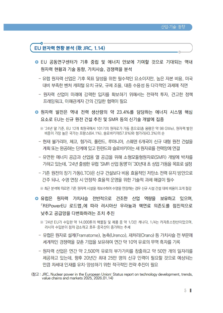 [2026년 3호] (산업‧기술동향) EU 원자력 현황 분석 (歐 JRC, 1.14)