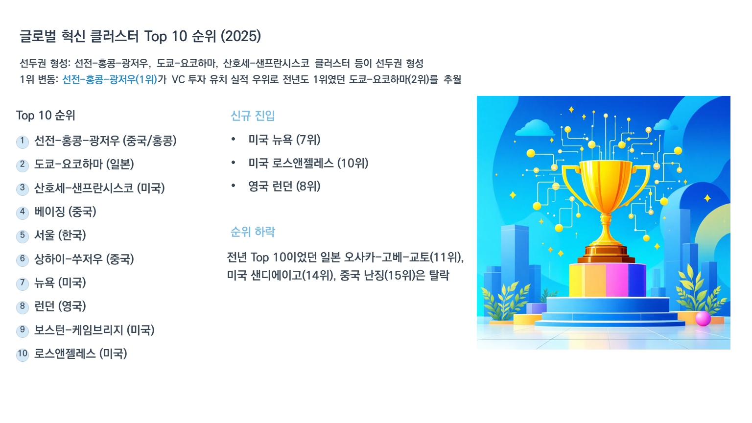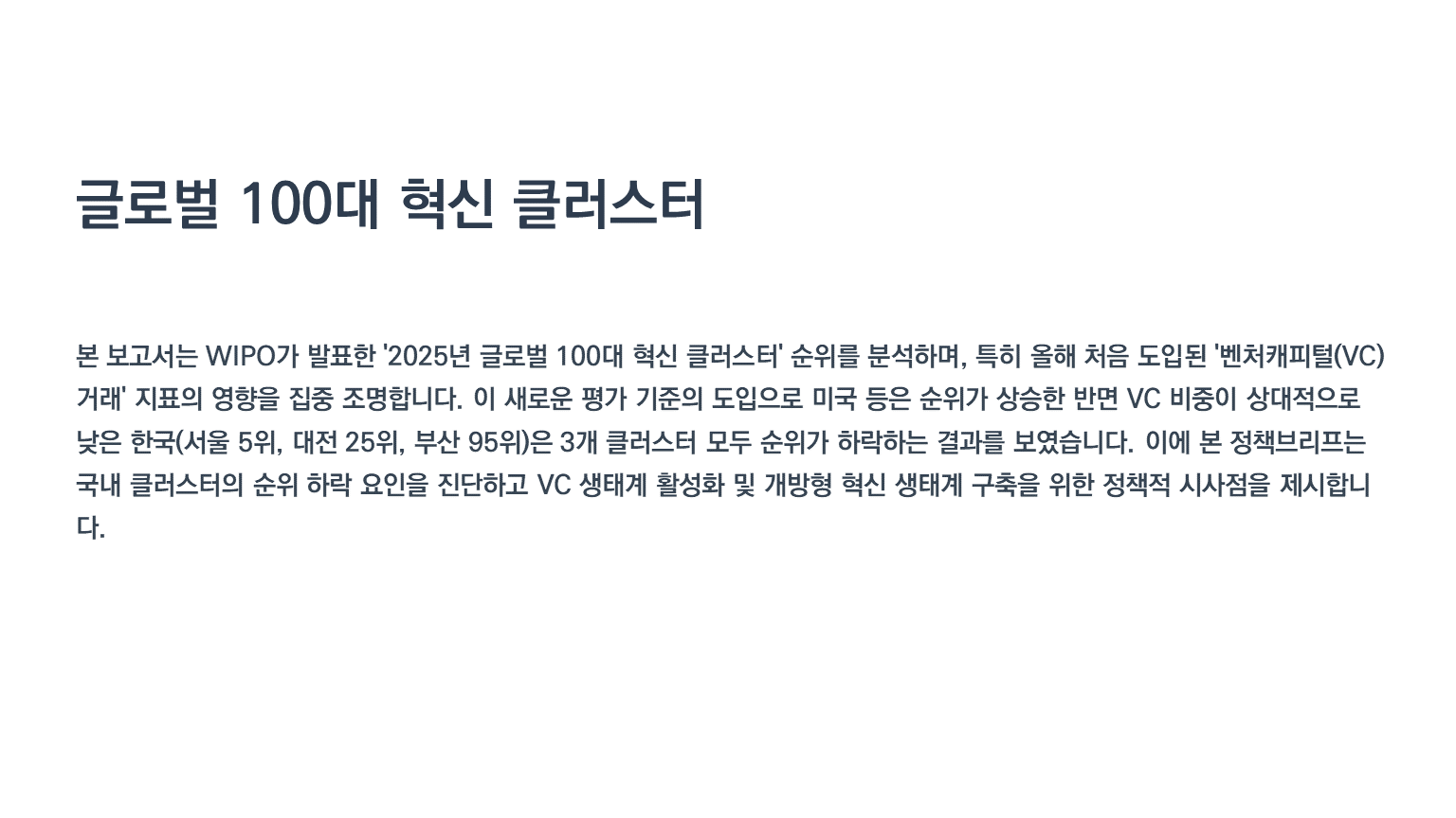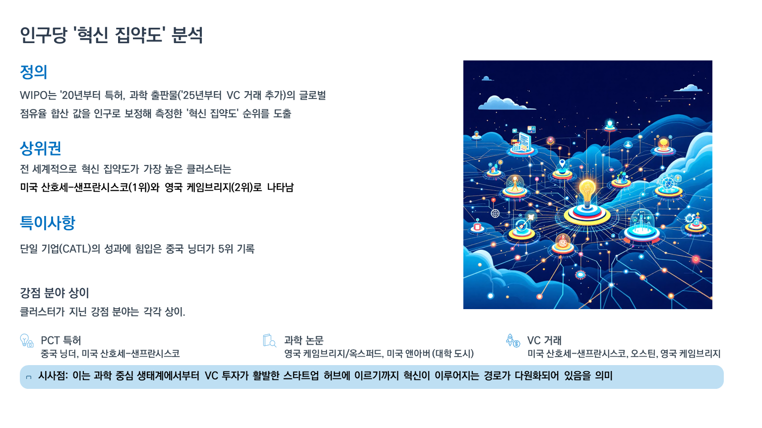 원문정보: 「Global Innovation Index 2025: Ranking of World's Top 100 Innovation Clusters(WIPO, 2025.9)」에서 주요내용을 요약・정리하고 정책 시사점 도출