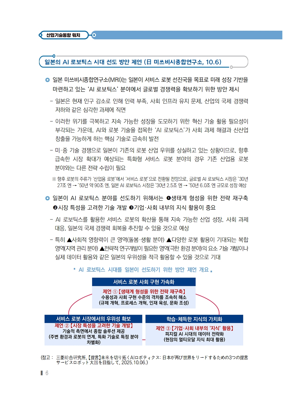 [2025년 20호] (산업‧기술동향) 일본의 AI 로보틱스 시대 선도 방안 제언 (日 미쓰비시종합연구소, 10.6)