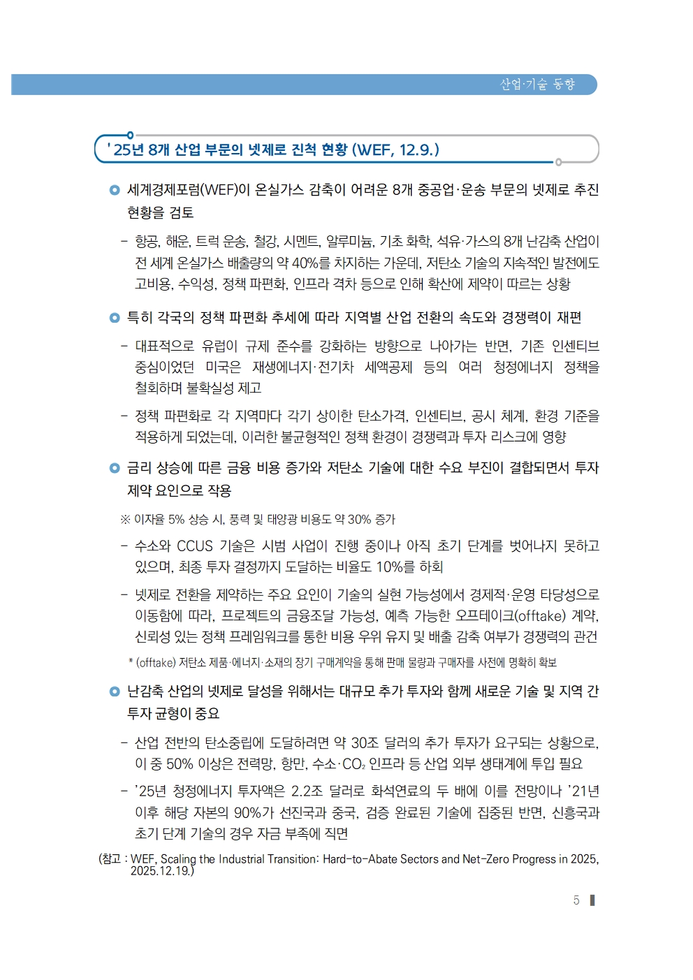 [2026년 1호] (산업‧기술동향) ’25년 8개 산업 부문의 넷제로 진척 현황 (WEF, 12.9.)