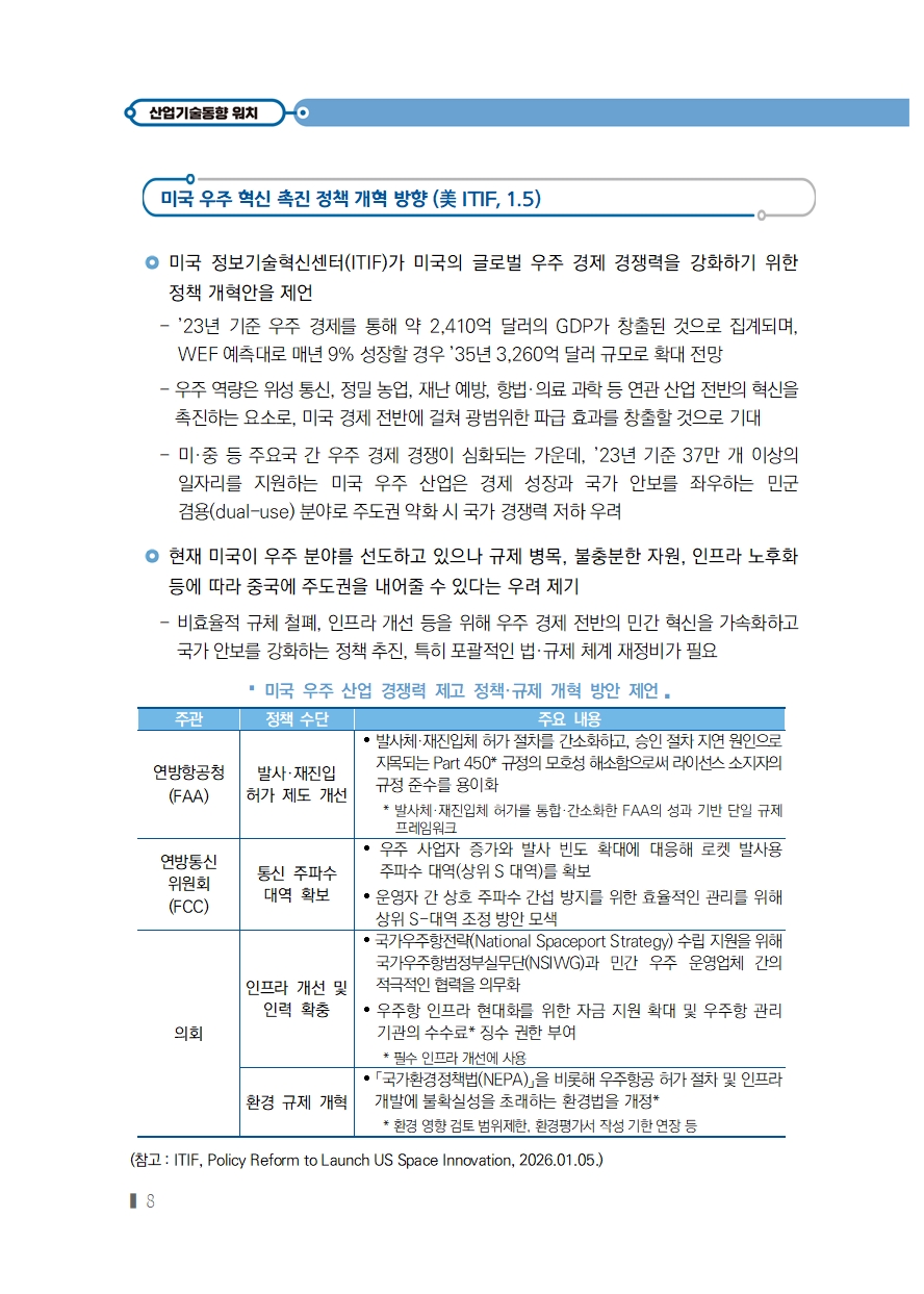[2026년 2호] (정책동향) 미국 우주 혁신 촉진 정책 개혁 방향 (美 ITIF, 1.5)