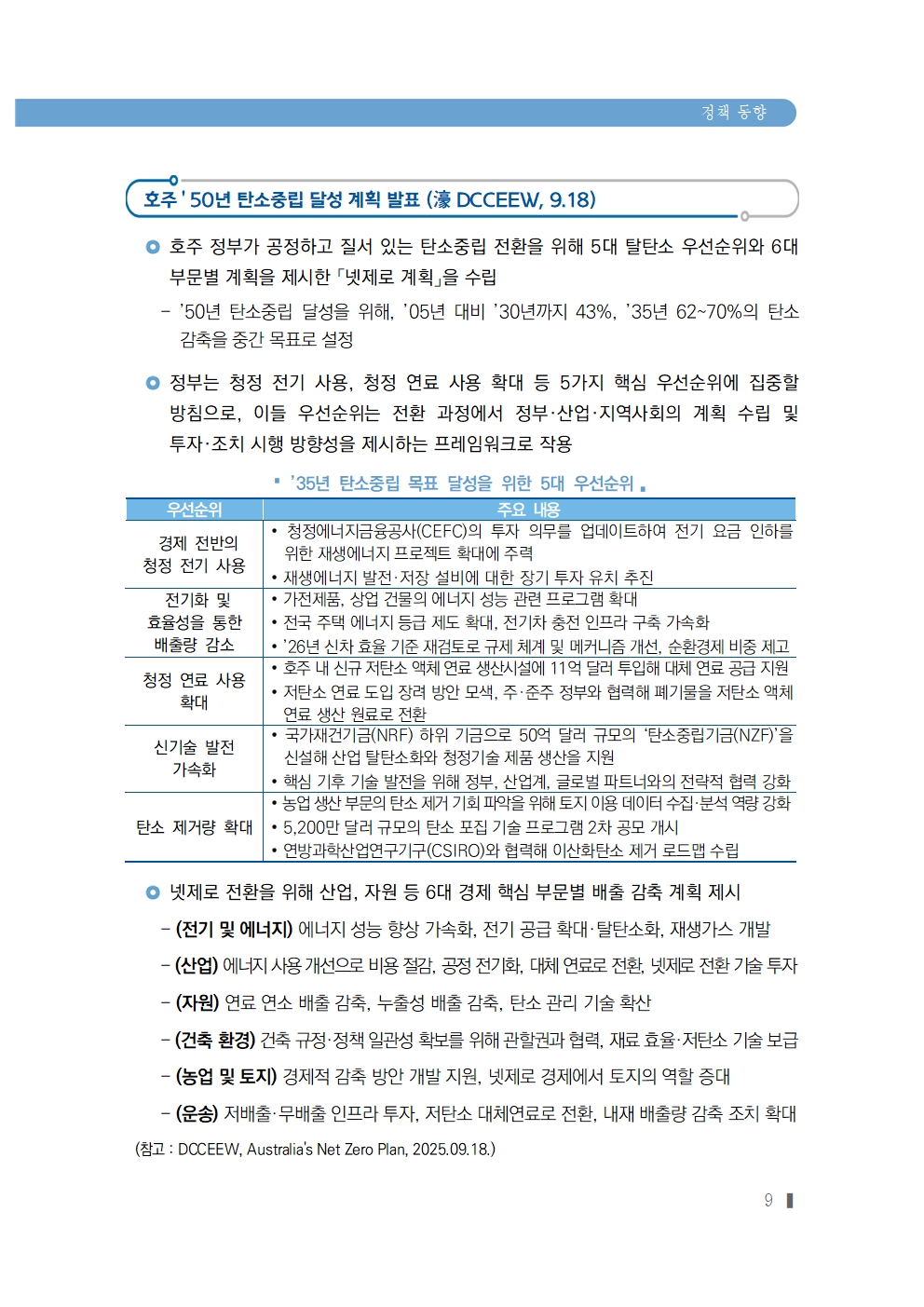 [2025년 19호] (정책동향) 호주 ’50년 탄소중립 달성 계획 발표 (濠 DCCEEW, 9.18)