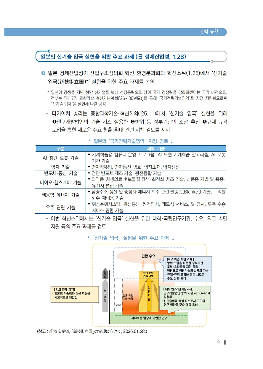 [2026년 3호] (정책동향) 일본의 신기술 입국 실현을 위한 주요 과제 (日 경제산업성, 1.28)