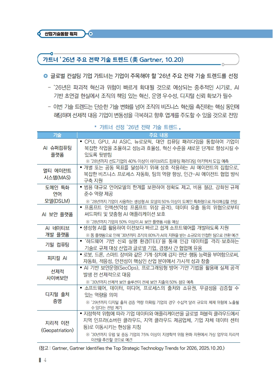 [2025년 21호] (산업‧기술동향) 가트너 ’26년 주요 전략 기술 트렌드 (美 Gartner, 10.20)
