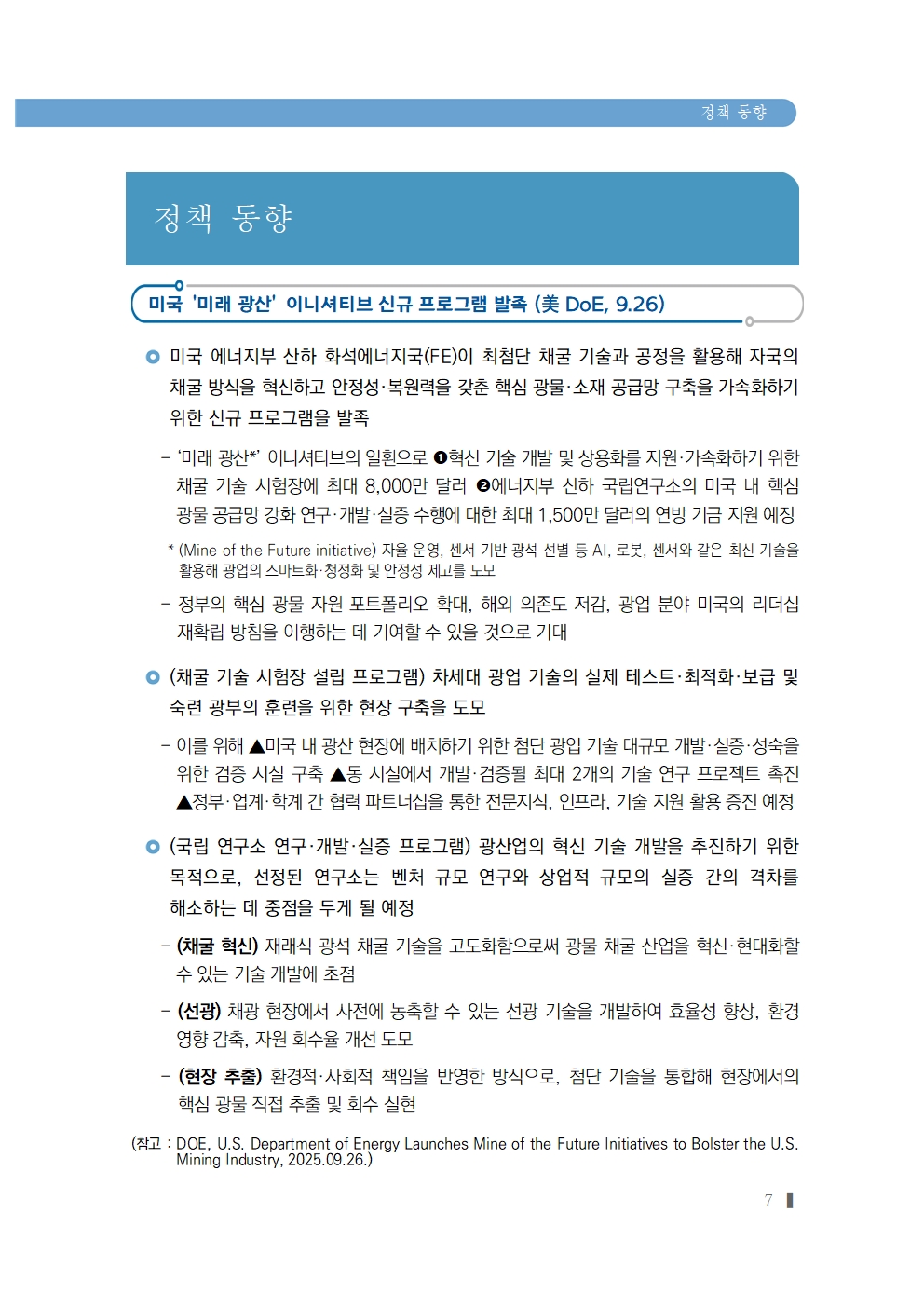 [2025년 20호] (정책동향) 미국 ‘미래 광산’ 이니셔티브 신규 프로그램 발족 (美 DoE, 9.26)