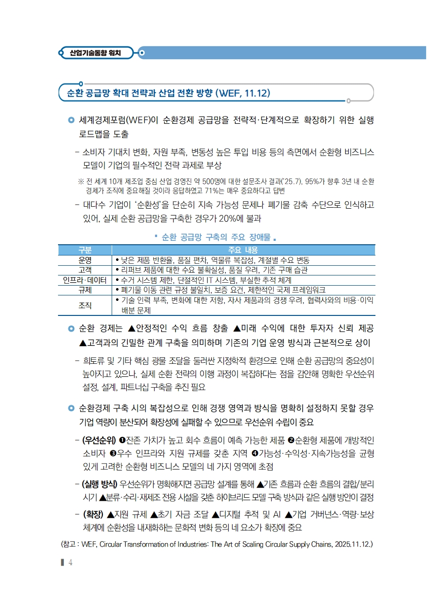 [2025년 23호] (산업‧기술동향) 순환 공급망 확대 전략과 산업 전환 방향 (WEF, 11.12)
