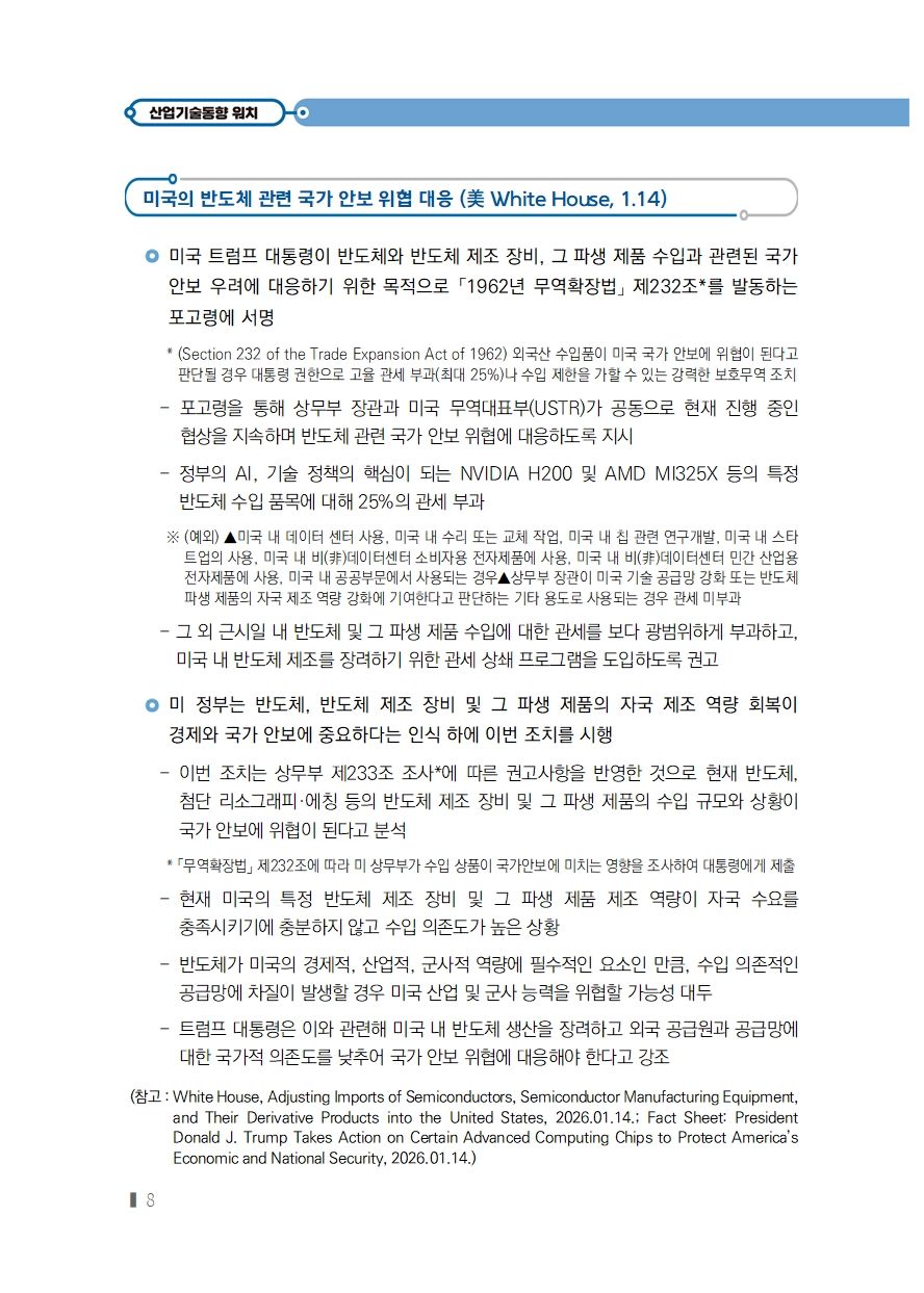 [2026년 3호] (정책동향) 미국의 반도체 관련 국가 안보 위협 대응 (美 White House, 1.14)