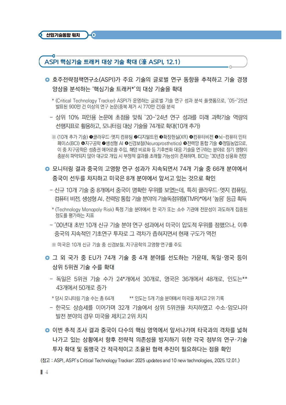 [2026년 1호] (산업‧기술동향) ASPI 핵심기술 트래커 대상 기술 확대 (濠 ASPI, 12.1)