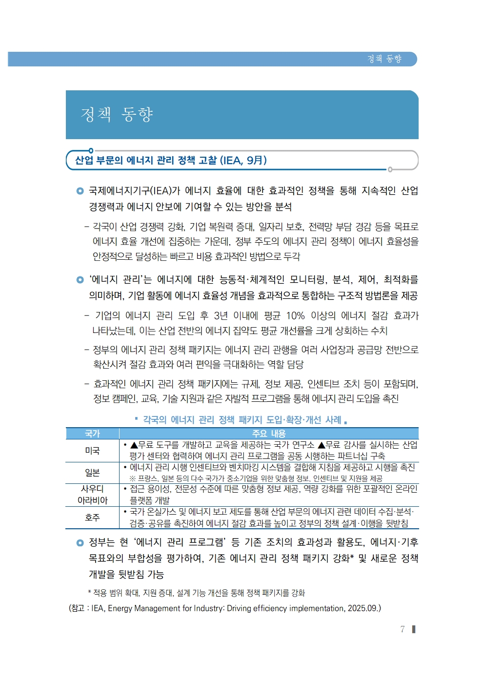 [2025년 18호] (정책동향) 산업 부문의 에너지 관리 정책 고찰 (IEA, 9月)
