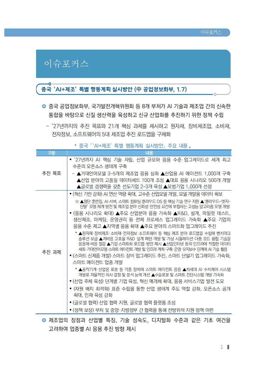 [2026년 2호] (이슈포커스) 중국 ‘AI+제조’ 특별 행동계획 실시방안 (中 공업정보화부, 1.7)