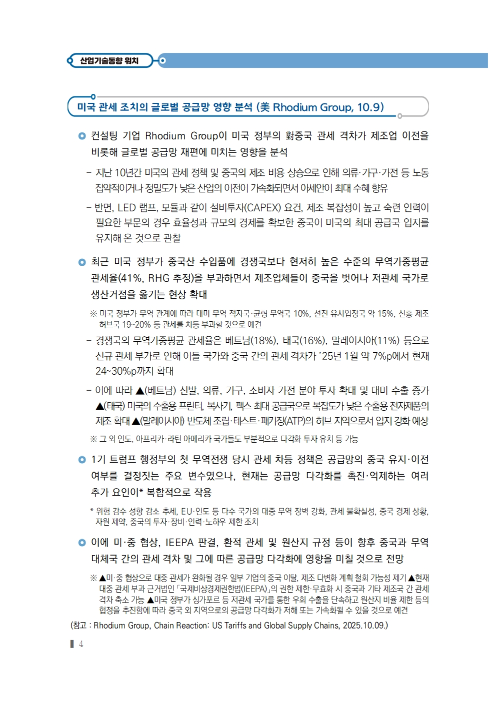 [2025년 20호] (산업‧기술동향) 미국 관세 조치의 글로벌 공급망 영향 분석 (美 Rhodium Group, 10.9)