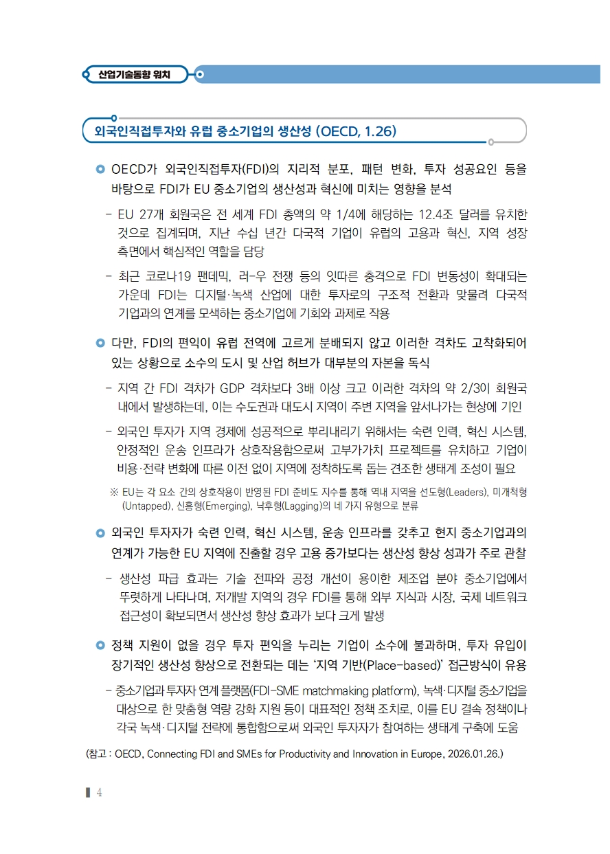 [2026년 3호] (산업‧기술동향) 외국인직접투자와 유럽 중소기업의 생산성 (OECD, 1.26)