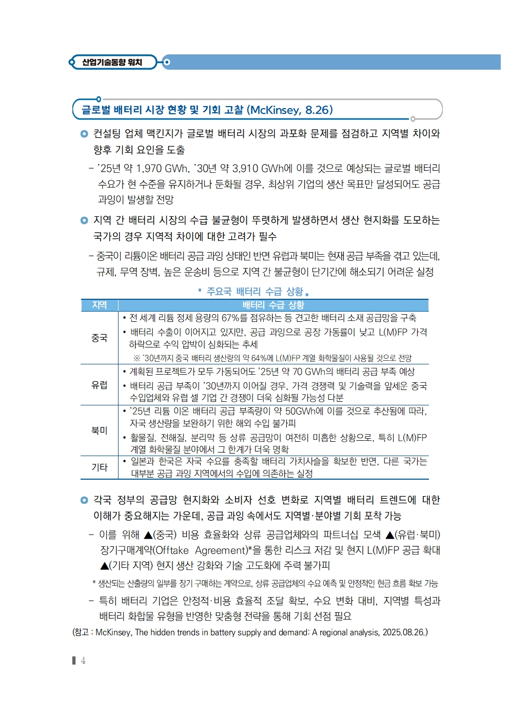 [2025년 18호] (산업‧기술동향) 글로벌 배터리 시장 현황 및 기회 고찰 (McKinsey, 8.26)