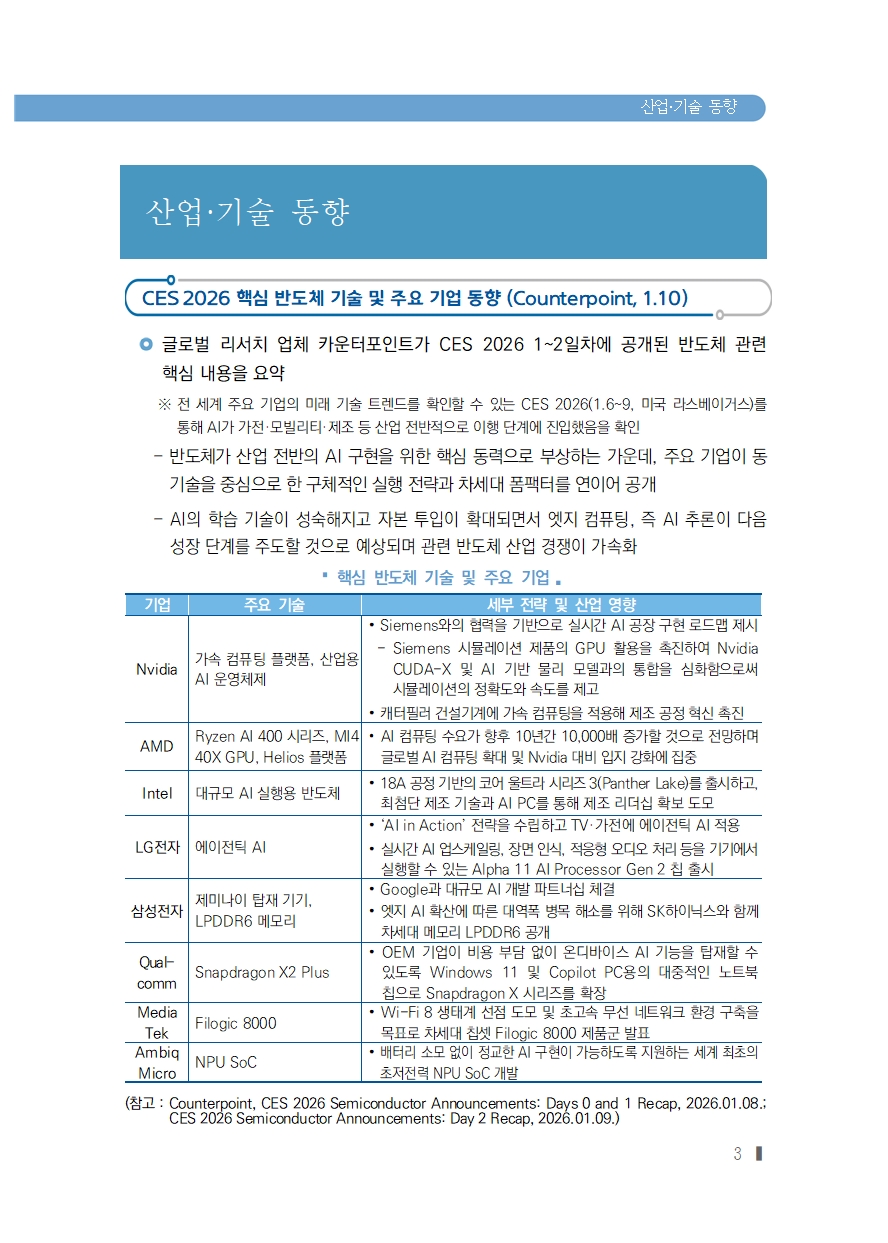 [2026년 2호] (산업‧기술동향) CES 2026 핵심 반도체 기술 및 주요 기업 동향 (Counterpoint, 1.10)