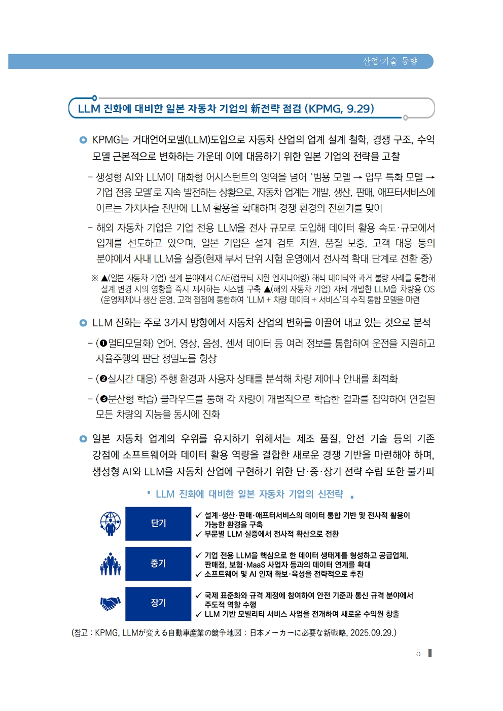 [2025년 20호] (산업‧기술동향) LLM 진화에 대비한 일본 자동차 기업의 新전략 점검 (KPMG, 9.29)