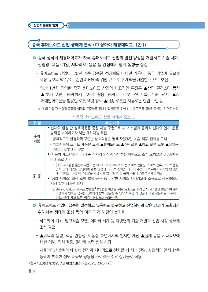 [2026년 2호] (산업‧기술동향) 중국 휴머노이드 산업 생태계 분석 (中 상하이 재경대학교, 12月)