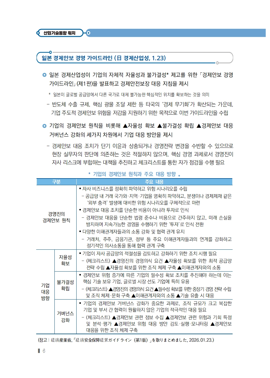 [2026년 3호] (산업‧기술동향) 일본 경제안보 경영 가이드라인 (日 경제산업성, 1.23)