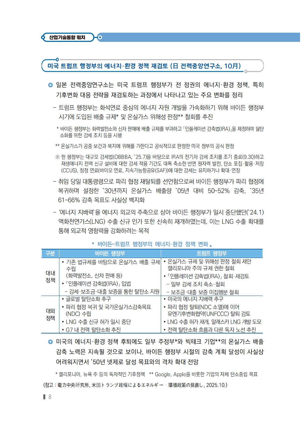 [2025년 20호] (정책동향) 미국 트럼프 행정부의 에너지·환경 정책 재검토 (日 전력중앙연구소, 10月)