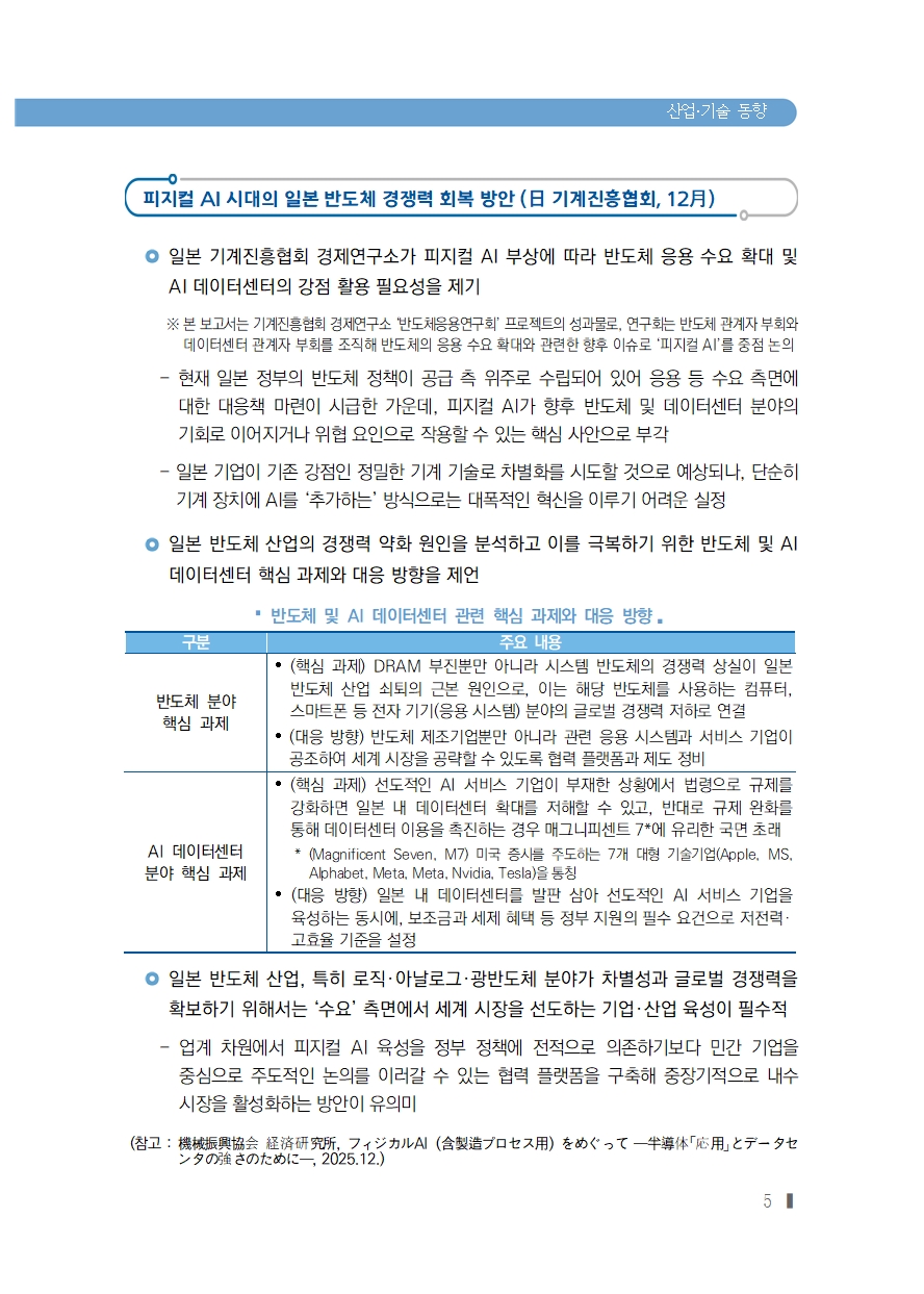 [2026년 2호] (산업‧기술동향) 피지컬 AI 시대의 일본 반도체 경쟁력 회복 방안 (日 기계진흥협회, 12月)
