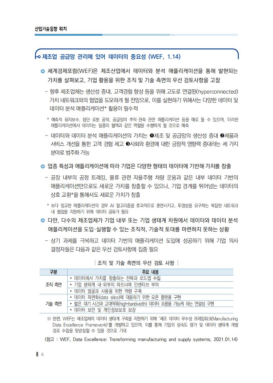 [2021년 3호] (산업·기술동향) 제조업 공급망 관리에 있어 데이터의 중요성 (WEF, 1.14)