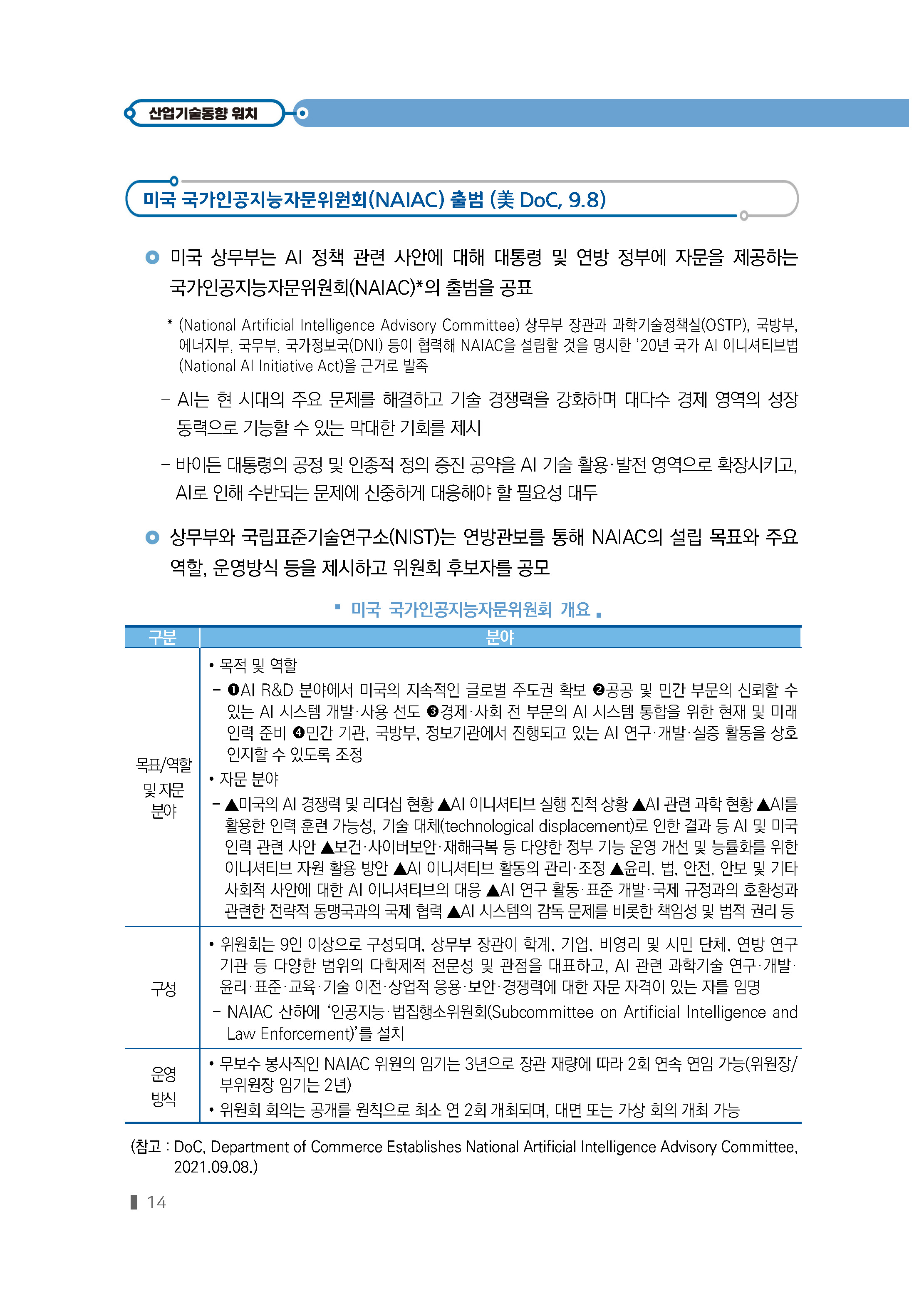 [2021년 19호] (정책동향) 미국 국가인공지능자문위원회(NAIAC) 출범 (美 DoC, 9.8)
