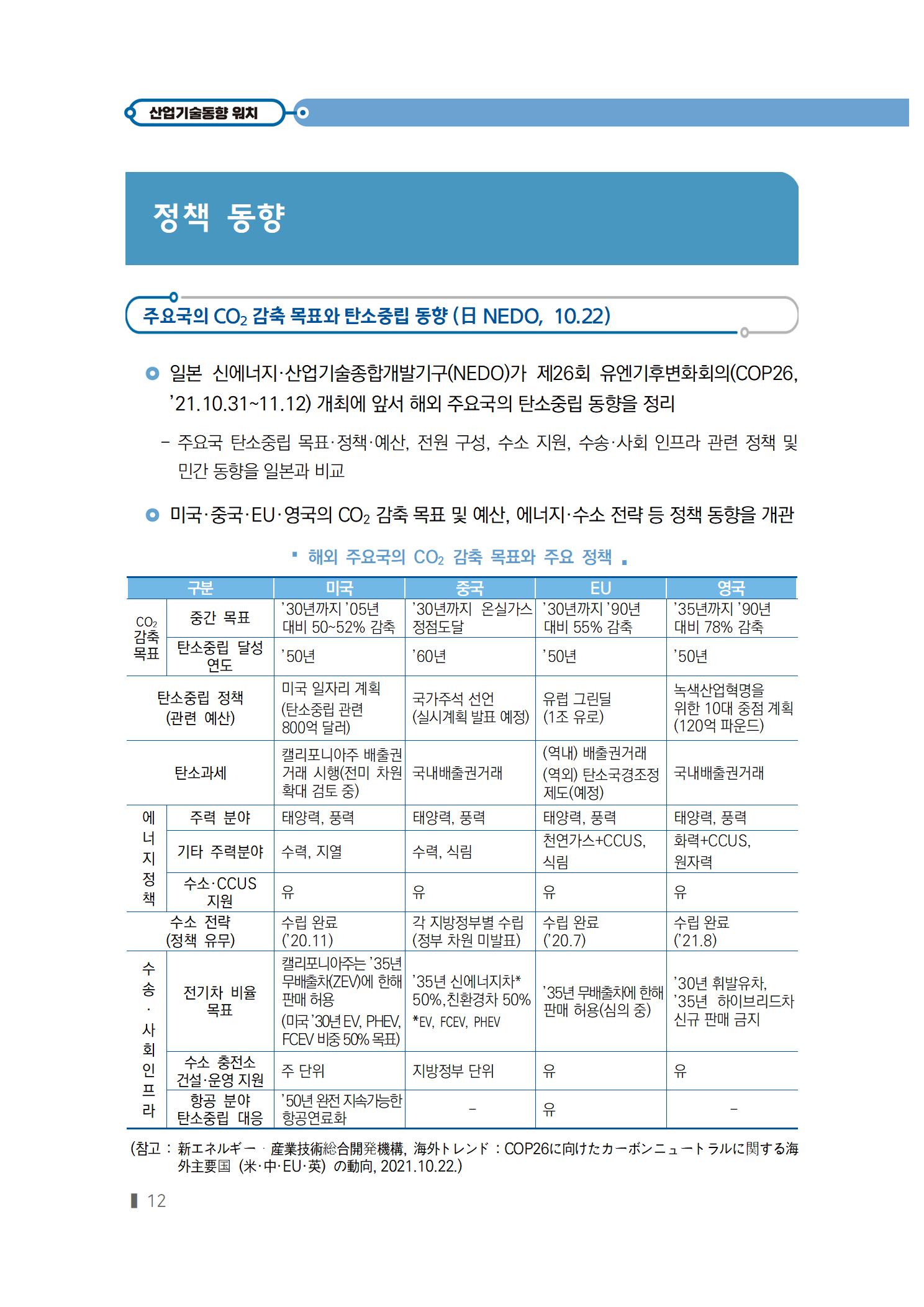 [2021년 21호] (정책동향) 주요국의 CO2 감축 목표와 탄소중립 동향 (日 NEDO, 10.22)