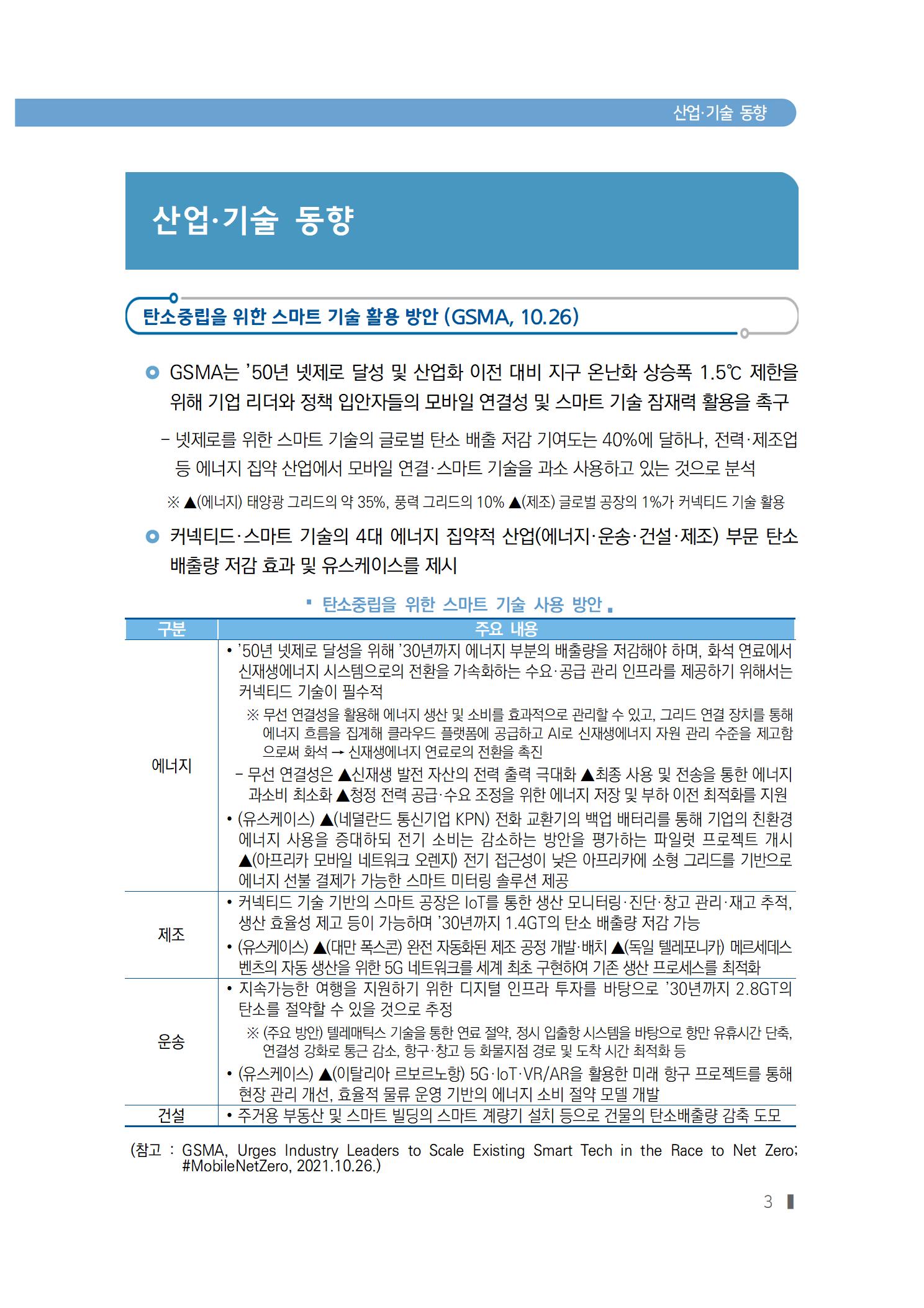 [2021년 22호] (산업·기술동향) 탄소중립을 위한 스마트 기술 활용 방안 (GSMA, 10.26)