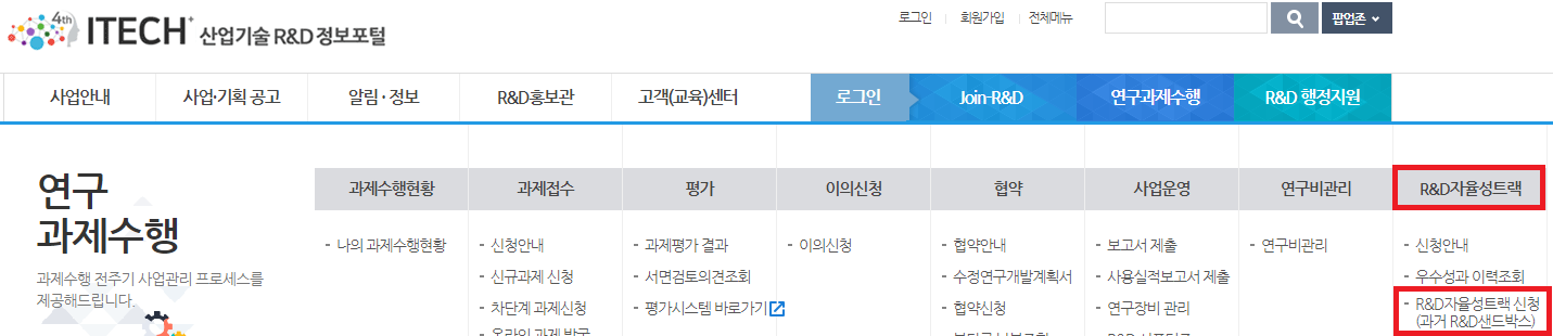 * 총괄과제, 비공개(보안)과제, 잔여기간 1년 미만 연구개발과제는 신청불가